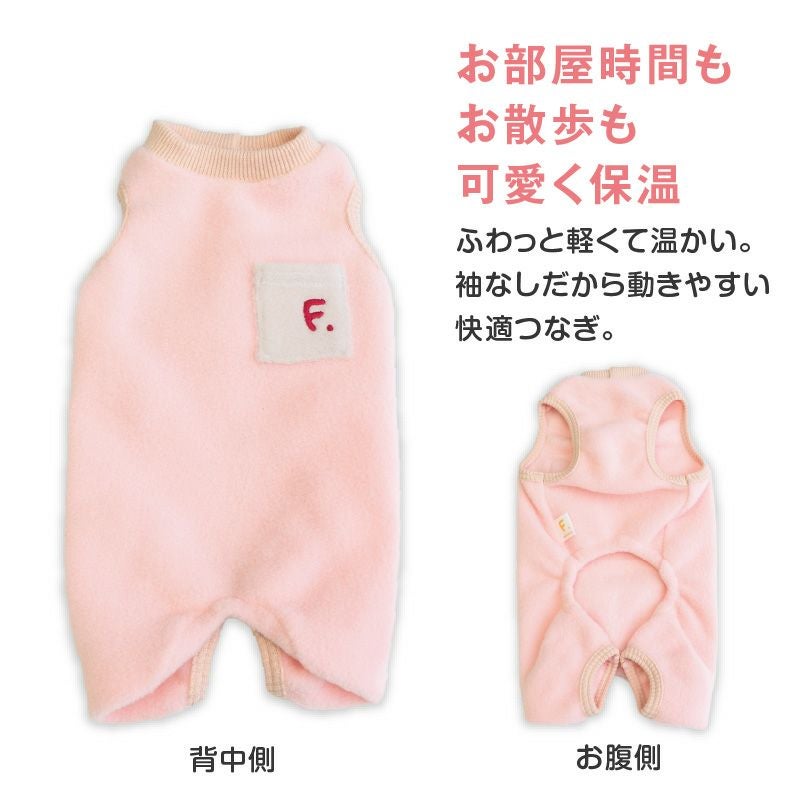 あったか ふわもこ ポケット付き 袖なし フリース つなぎ ダックス 小型犬用