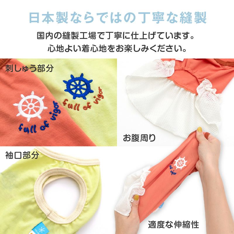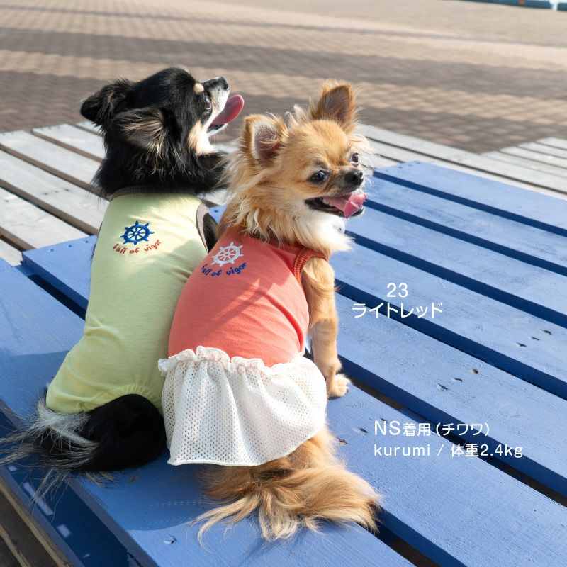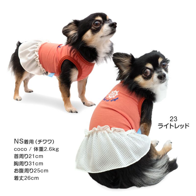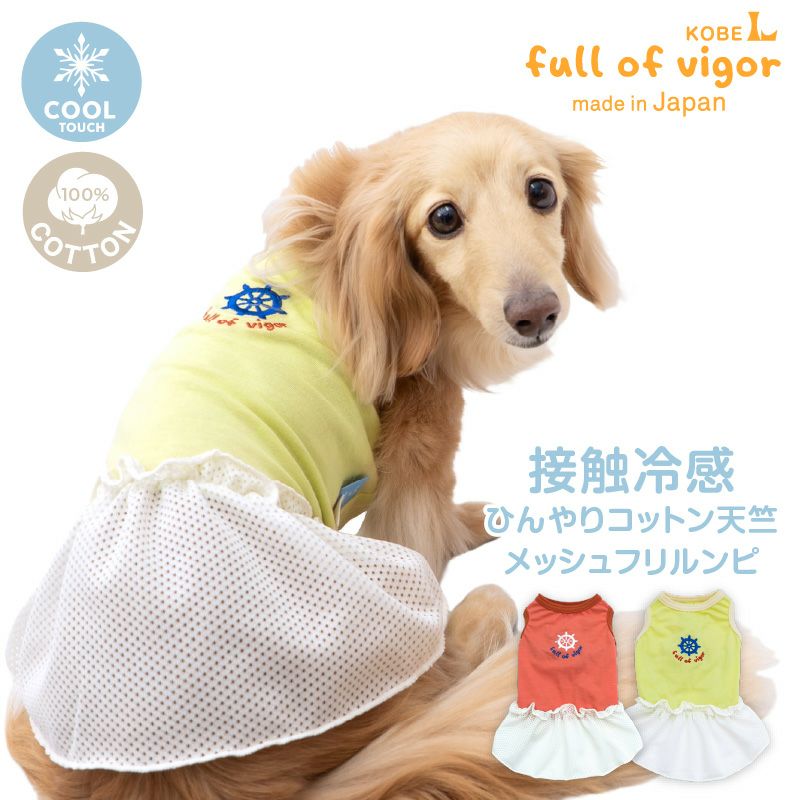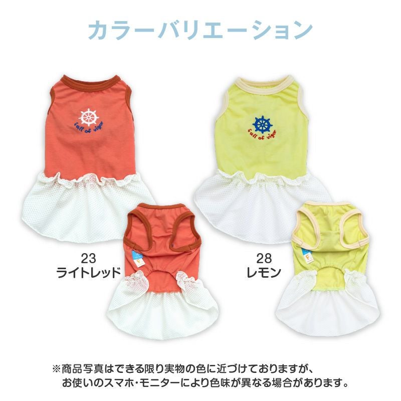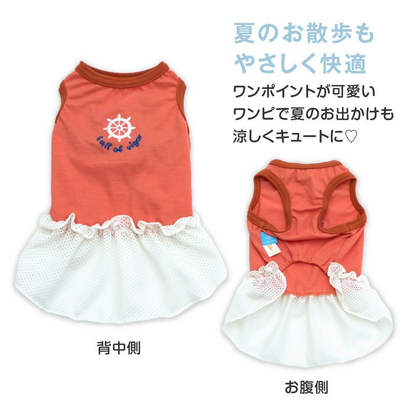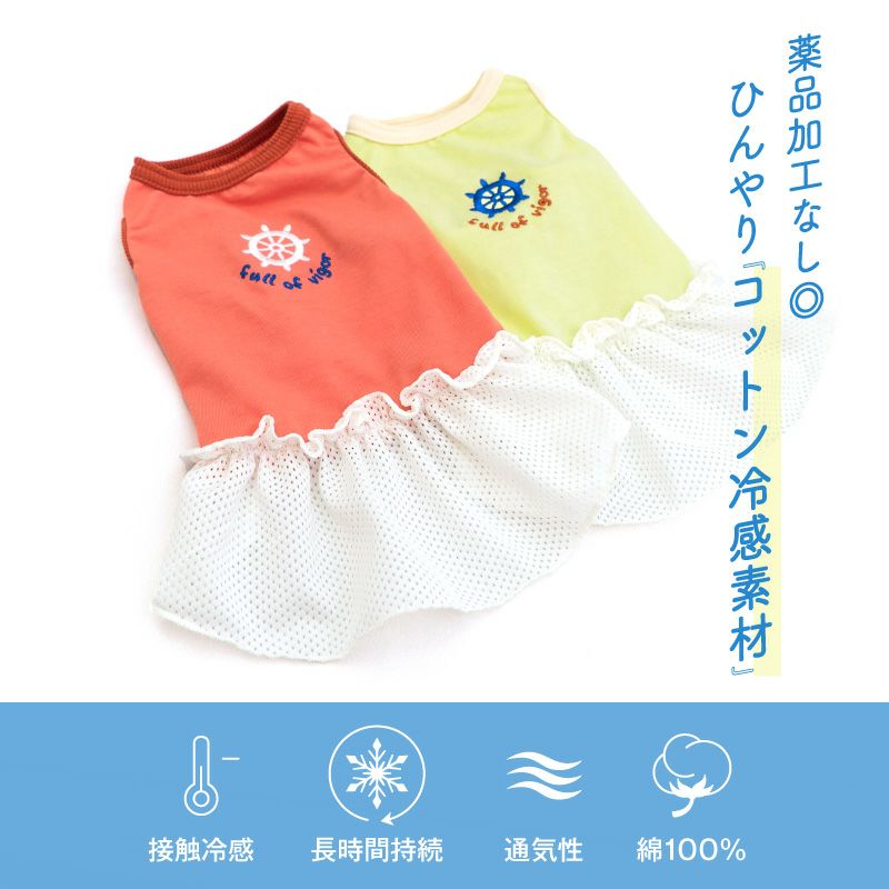 接触冷感 ひんやりコットン 天竺 ワンポイント メッシュ フリル ワンピース ダックス 小型犬用