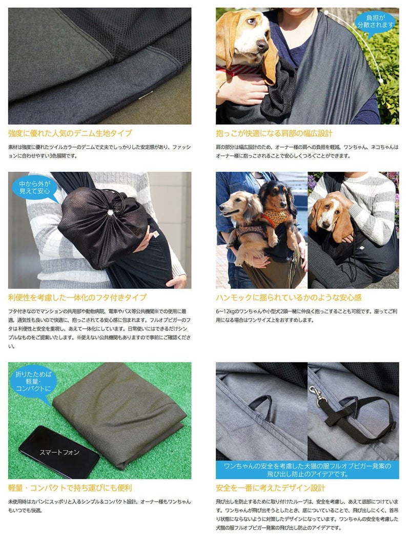 ドッグスリングは犬猫の服フルオブビガー発案のヒット商品です。