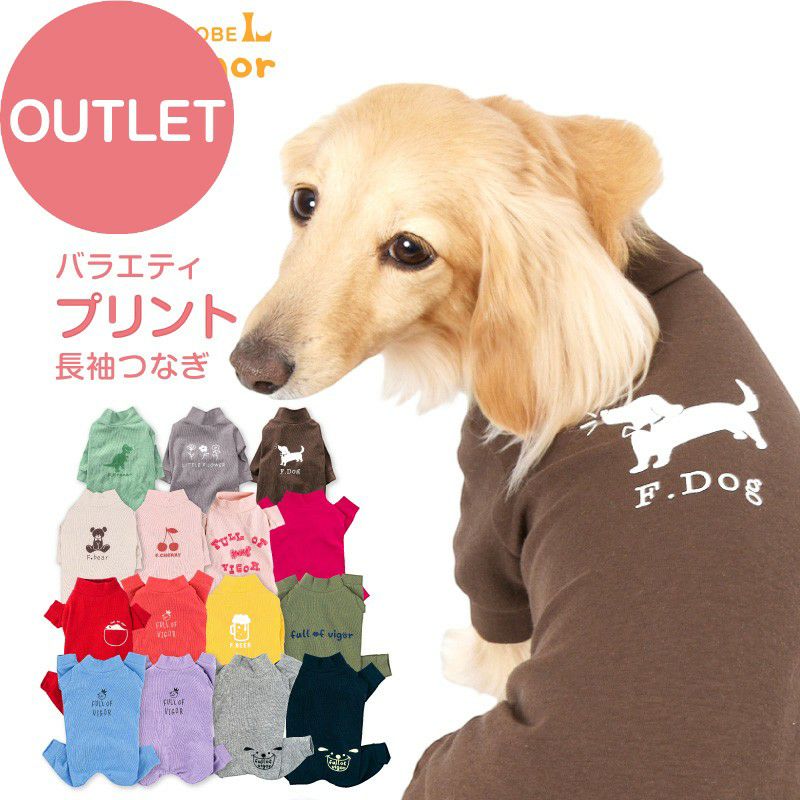 【アウトレット】伸びて 着せやすい バラエティ プリント 長袖 つなぎ ダックス 小型犬用