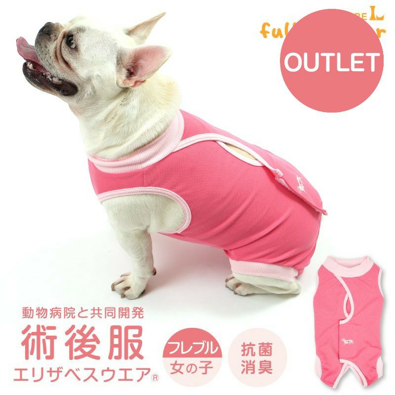 手術後の傷舐めを防止する首輪・エリザベスカラーは、 術後のワンちゃんネコちゃんにとって大きな負担になっていました。 「術後服エリザベスウエア®」は、服を着用することで 傷舐め防止と傷口保護をするという画期的な発想のウエア。 カラーのように動作を妨げることがないので、術後のストレスを大きく軽減できます。