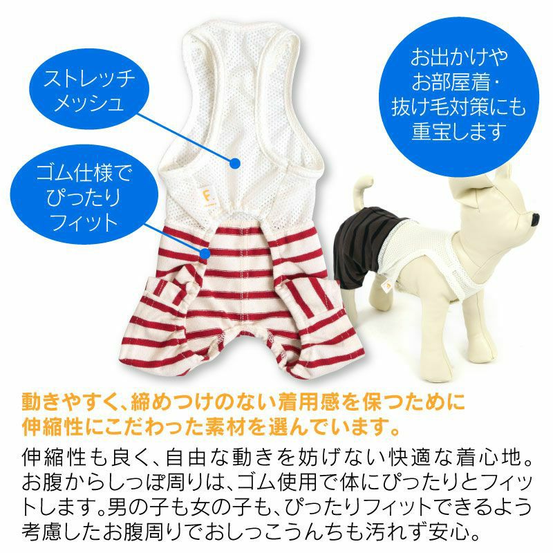 【アウトレット】メッシュ インナー付 天竺 ボーダー パンツ ダックス 小型犬用