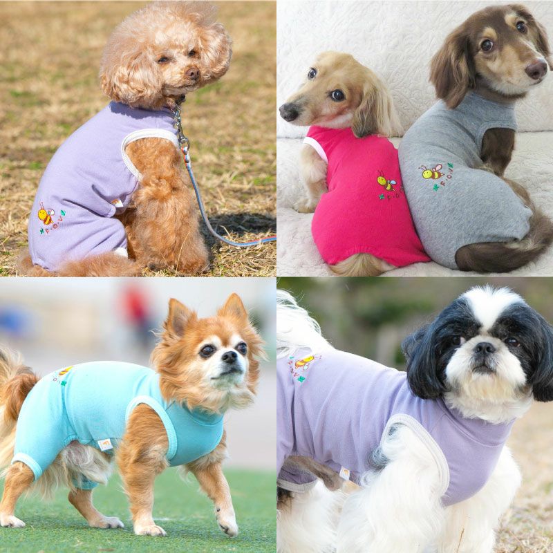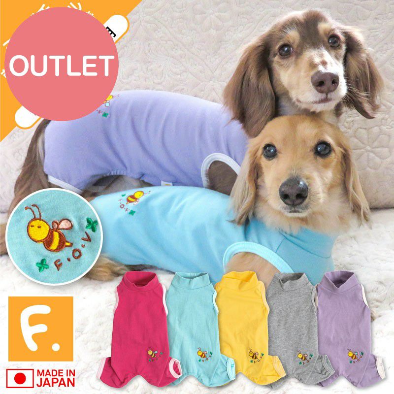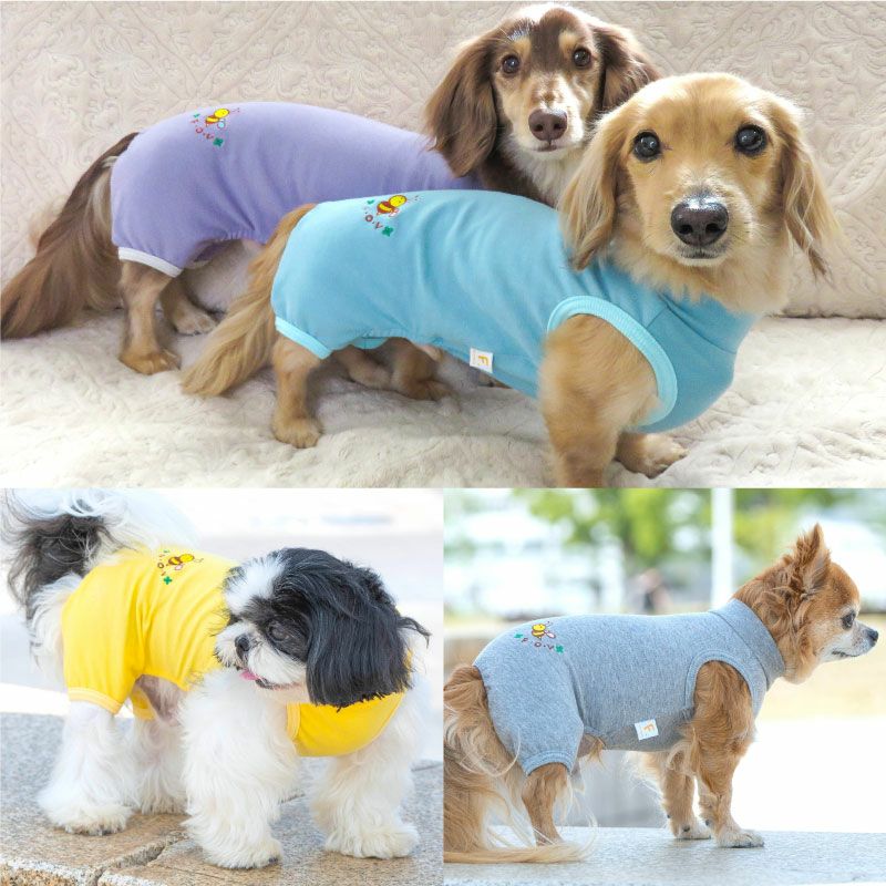 【アウトレット】伸びて 着せやすい ミツバチ 刺しゅう シンプル ベア天 お部屋着 ルームウェア ダックス 小型犬用