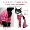【アウトレット】猫用 伸びて 着せやすい ウォームボーダー 袖なし つなぎ