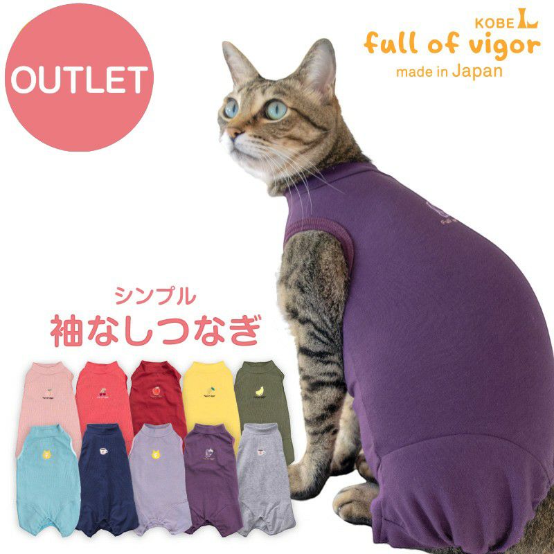 【アウトレット】猫用 伸びて 着せやすい シンプル 袖なし つなぎ