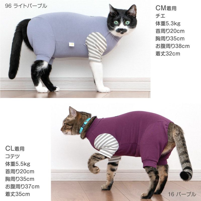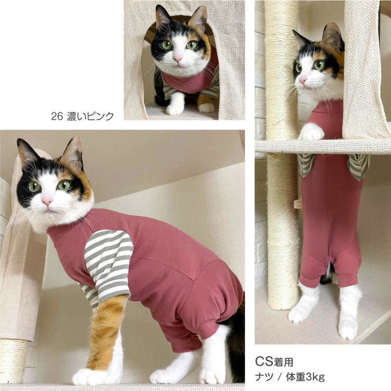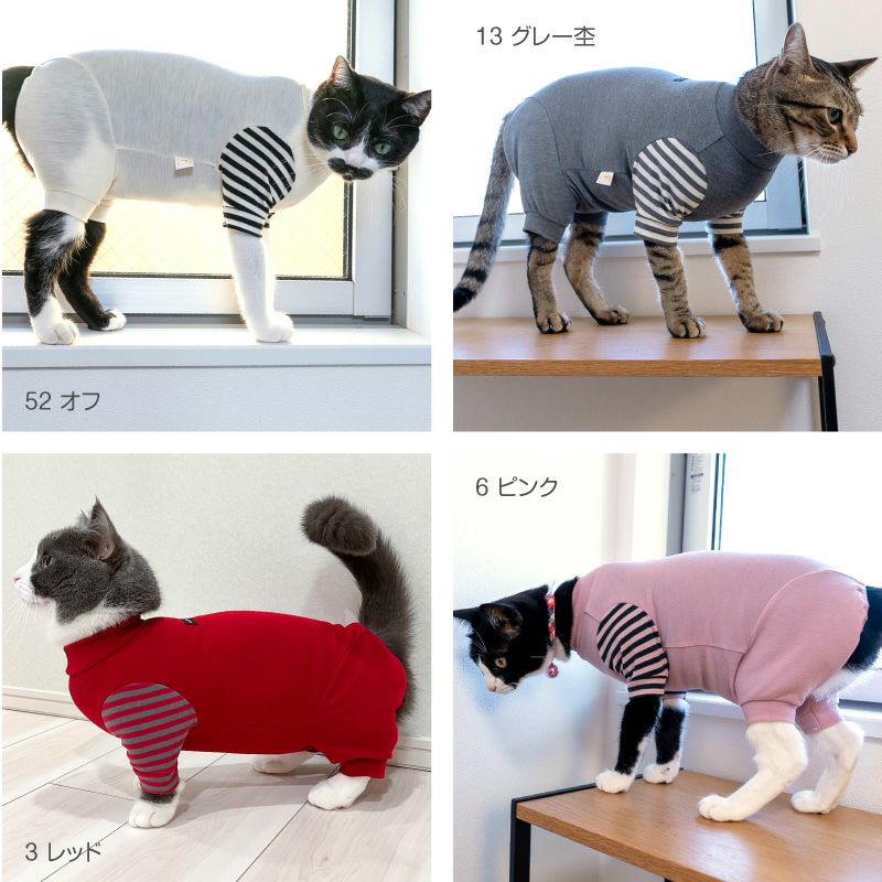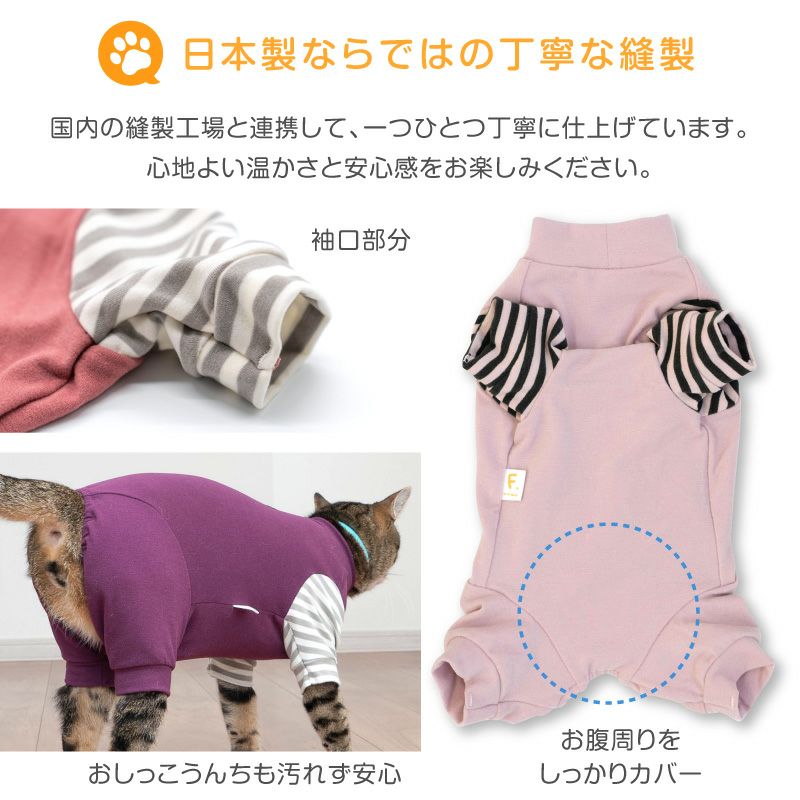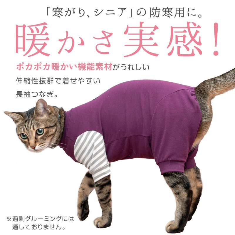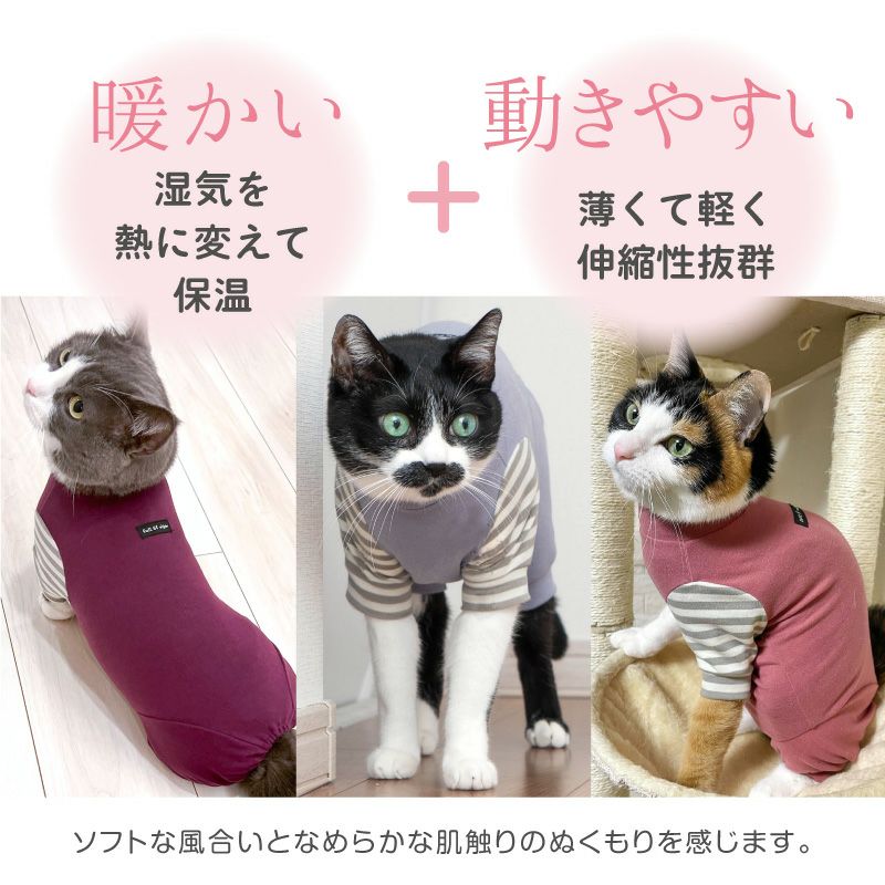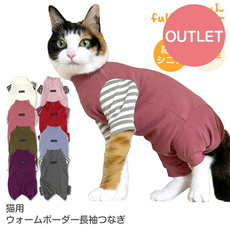 【アウトレット】猫用 伸びて 着せやすい ウォームボーダー 長袖 つなぎ