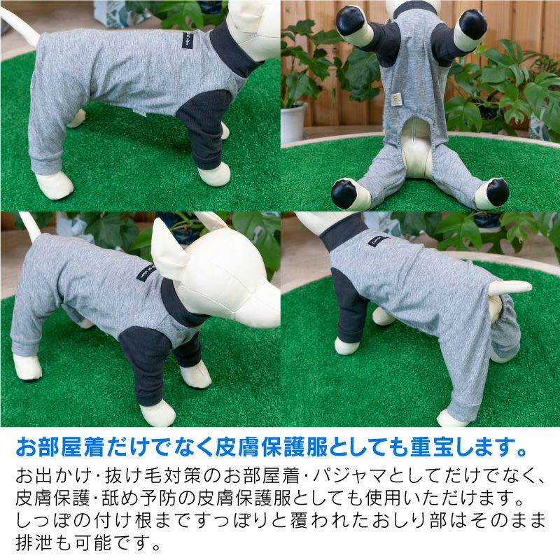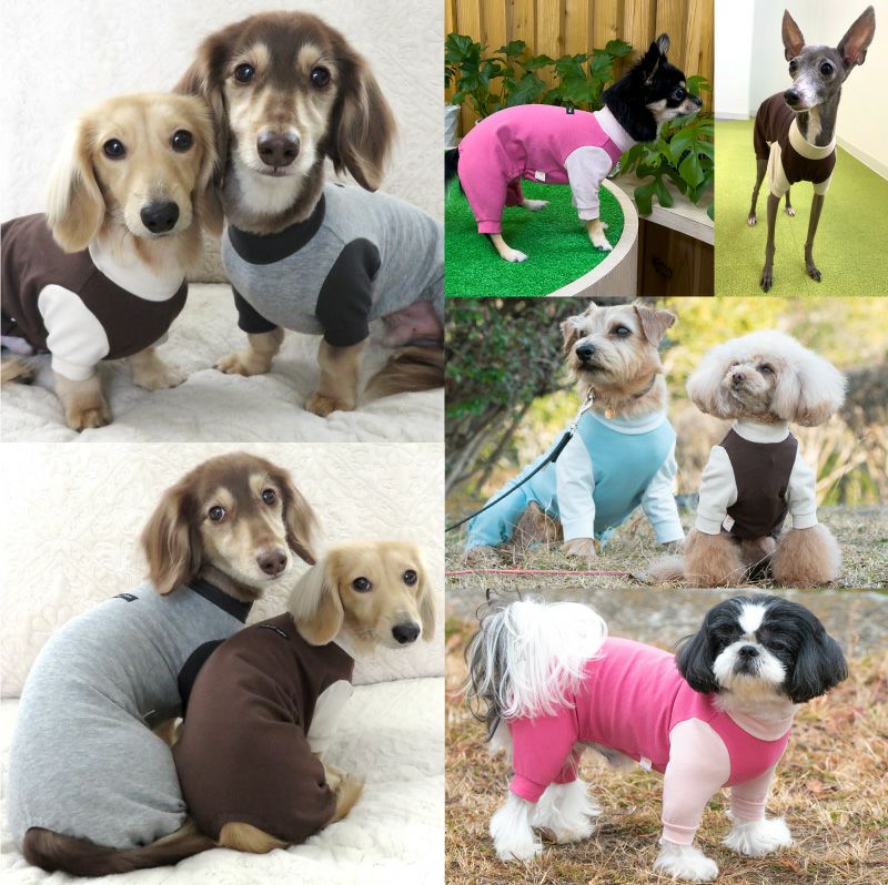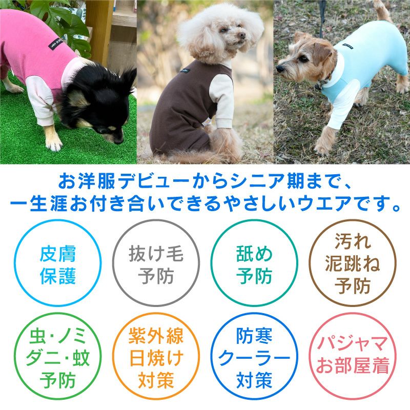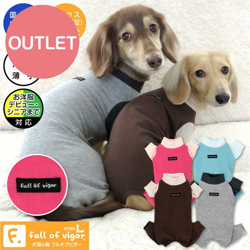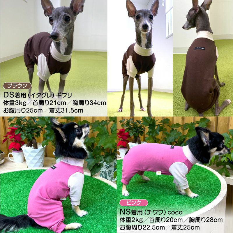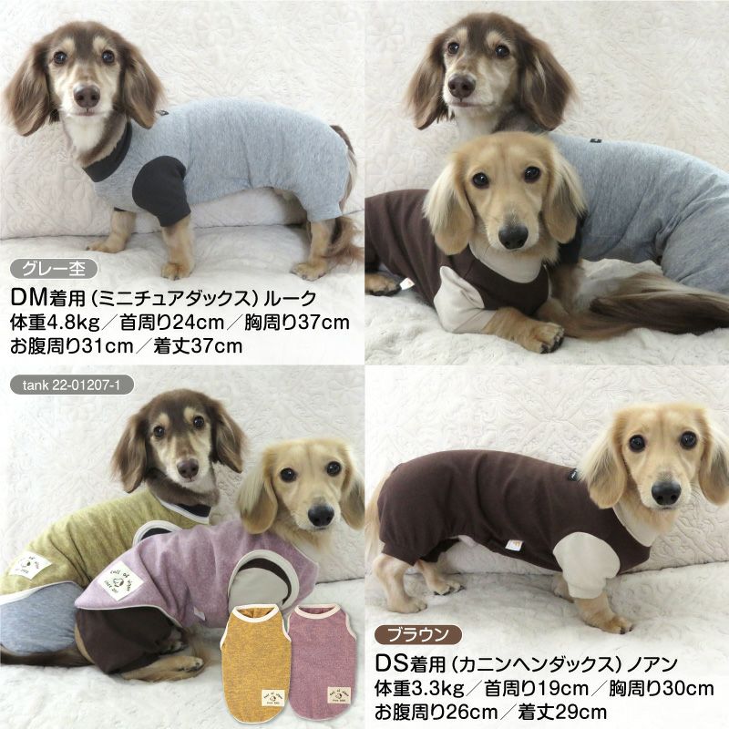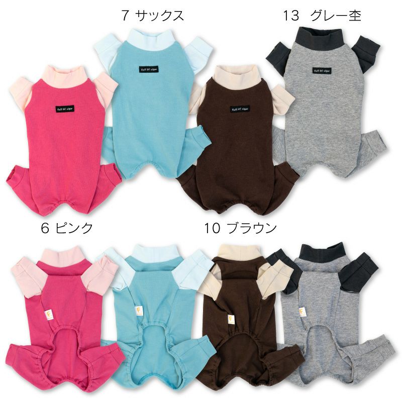 【アウトレット】伸びて 着せやすい バイカラー ベア天 長袖 つなぎ ダックス 小型犬用