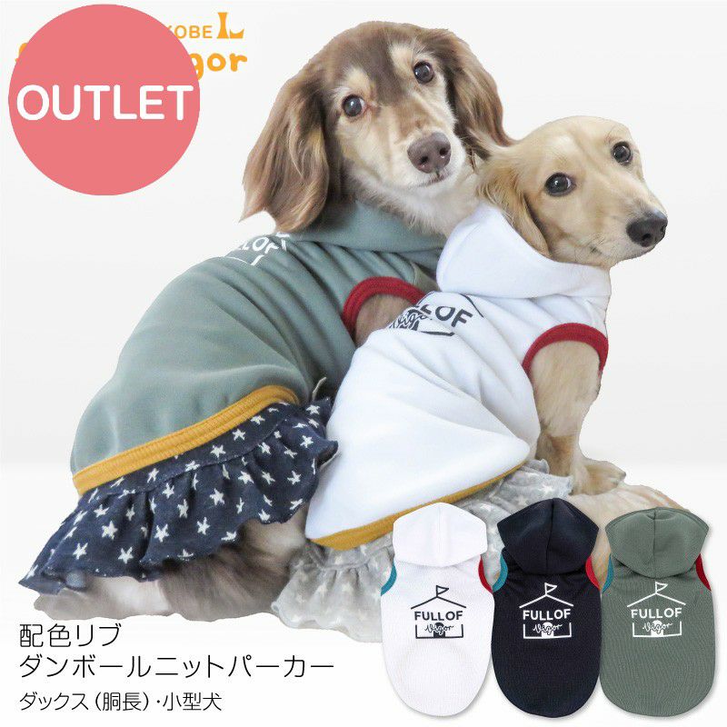 【アウトレット】配色 リブ ダンボールニット パーカー ダックス 小型犬用
