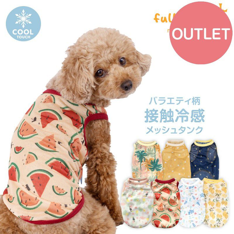夏場のお散歩時に大活躍の接触冷感素材のメッシュタンク。フルオブビガーオリジナルのお日様ドット(イエロー) & 夜空スター柄(ネイビー)のデザイン。