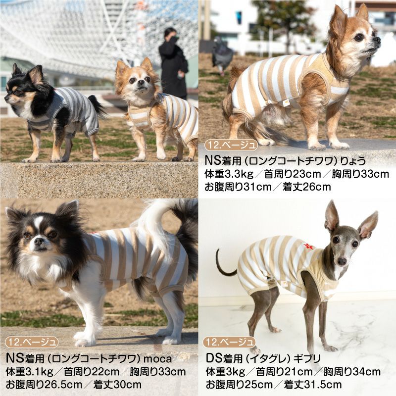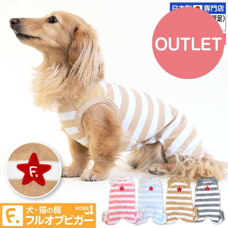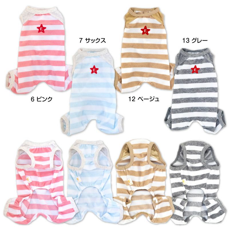 【アウトレット】パイル ボーダー 袖なし お部屋 つなぎ ダックス 小型犬用