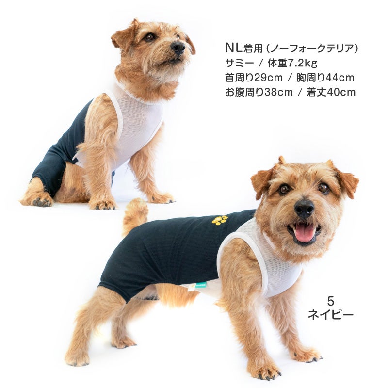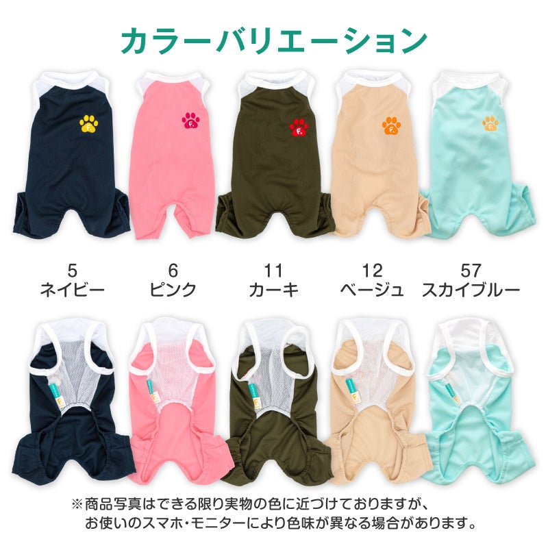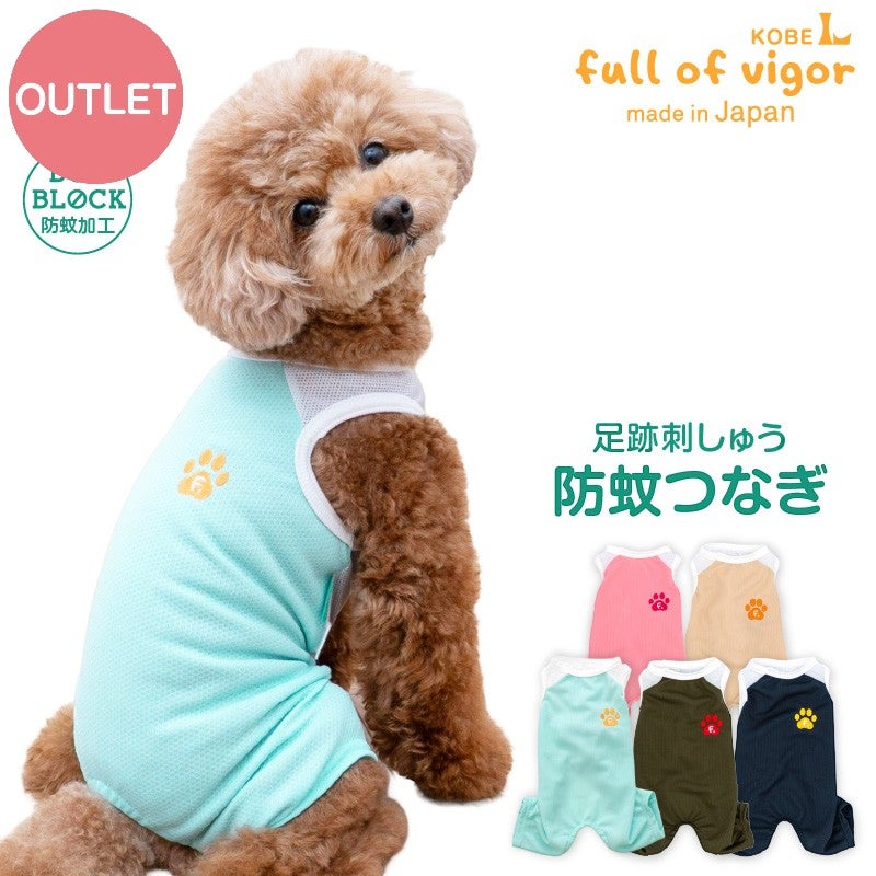 【アウトレット】足跡 刺しゅう 防蚊 切り替え 袖なし つなぎ ダックス 小型犬用