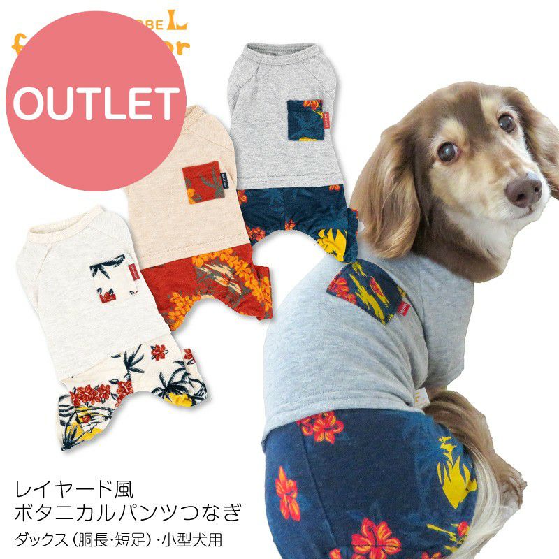 【アウトレット】レイヤード風 ボタニカル パンツ つなぎ ダックス 小型犬用