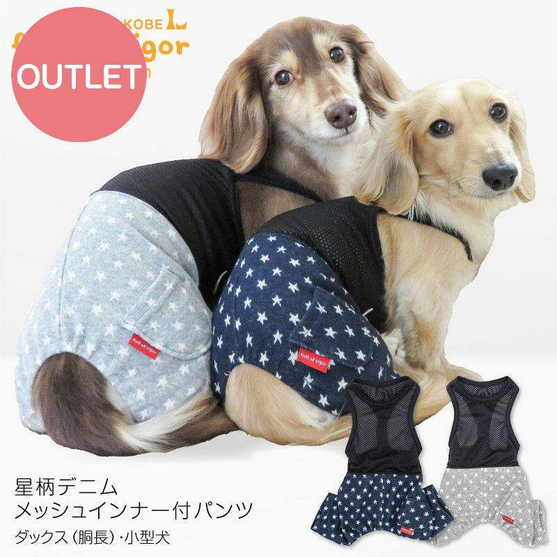 【アウトレット】星柄 デニム メッシュ インナー付 パンツ おそろコーデ ダックス 小型犬用