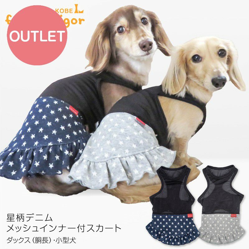 【アウトレット】星柄 デニム メッシュ インナー付 スカート おそろコーデ ダックス 小型犬用