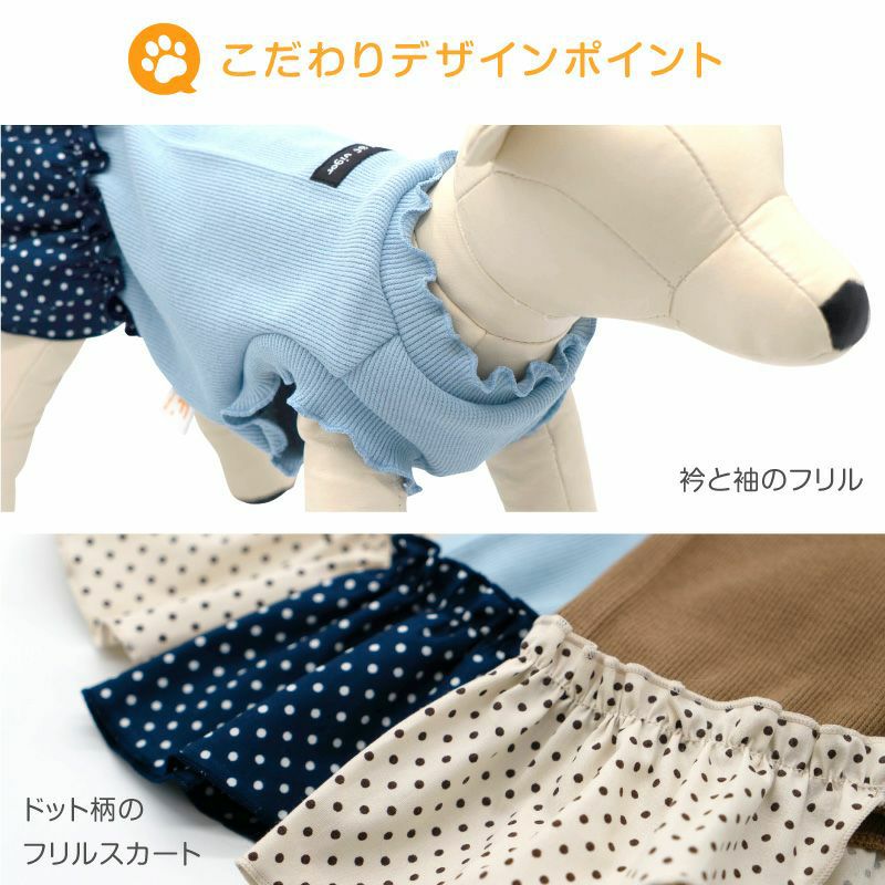 コレクション:【2023年秋冬】着脱簡単! 愛されガーリーワンピ。この秋は、ドットで決まりでしょ。レトロなドット柄でトレンド感アップ!伸縮性の良いテレコ素材は、着脱がラクチンで嬉しい一枚。衿や袖のフリルに、ドット柄のフリルスカートがついた、キュンポイント満載のガーリーアイテム。国内の縫製工場と連携して、一つひとつ丁寧に仕上げています。心地よい温かさと安心感をお楽しみください。●本体 :40スパンテレコ(ポリエステル95%・ポリウレタン5%)●部分使い:ブロード水玉(綿100%)●日本製 :MADE IN JAPAN●伸縮性 :★★★★●厚 さ :★★