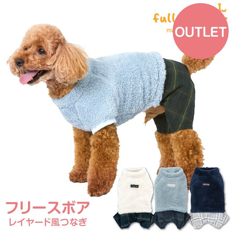 【アウトレット】あったか ふわもこ レイヤード風 フリース ボア つなぎ おそろコーデ ダックス 小型犬用