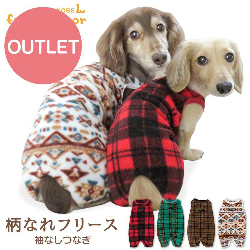 【アウトレット】あったか ふわもこ 柄なれ フリース 袖なし つなぎ ダックス 小型犬用