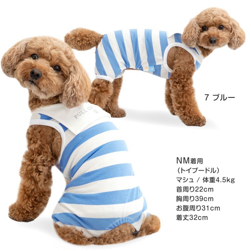 【アウトレット】接触冷感 太ボーダー セーラー衿 つなぎ ダックス 小型犬用
