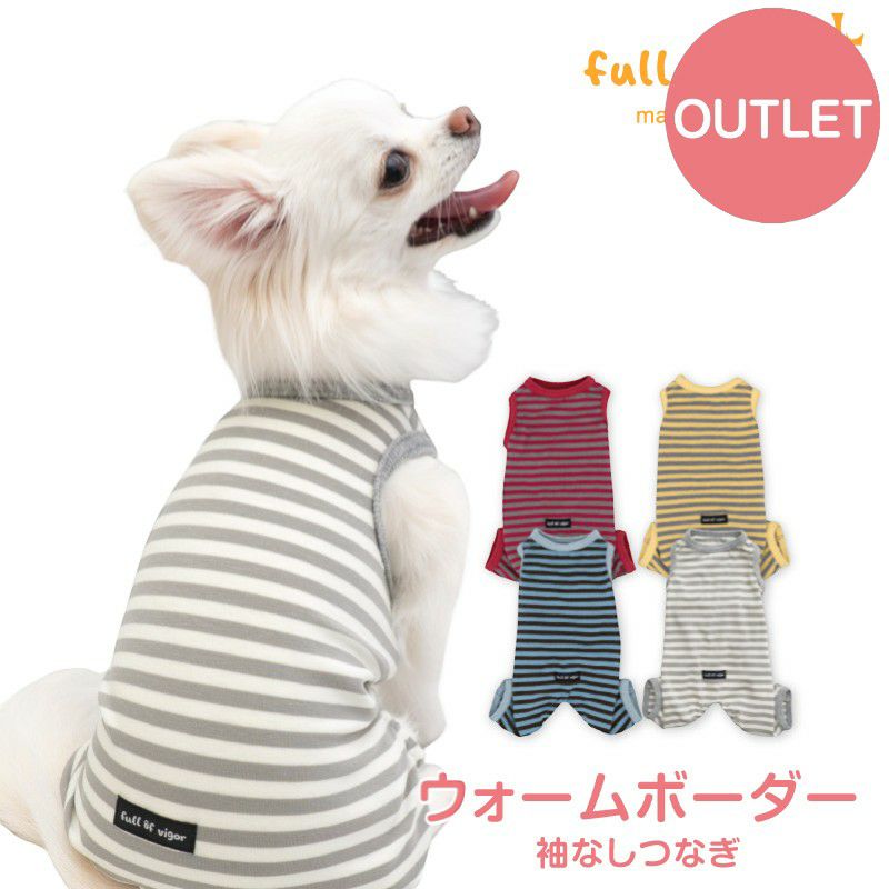 【アウトレット】伸びて 着せやすい ウォームボーダー 袖なし つなぎ ダックス 小型犬用