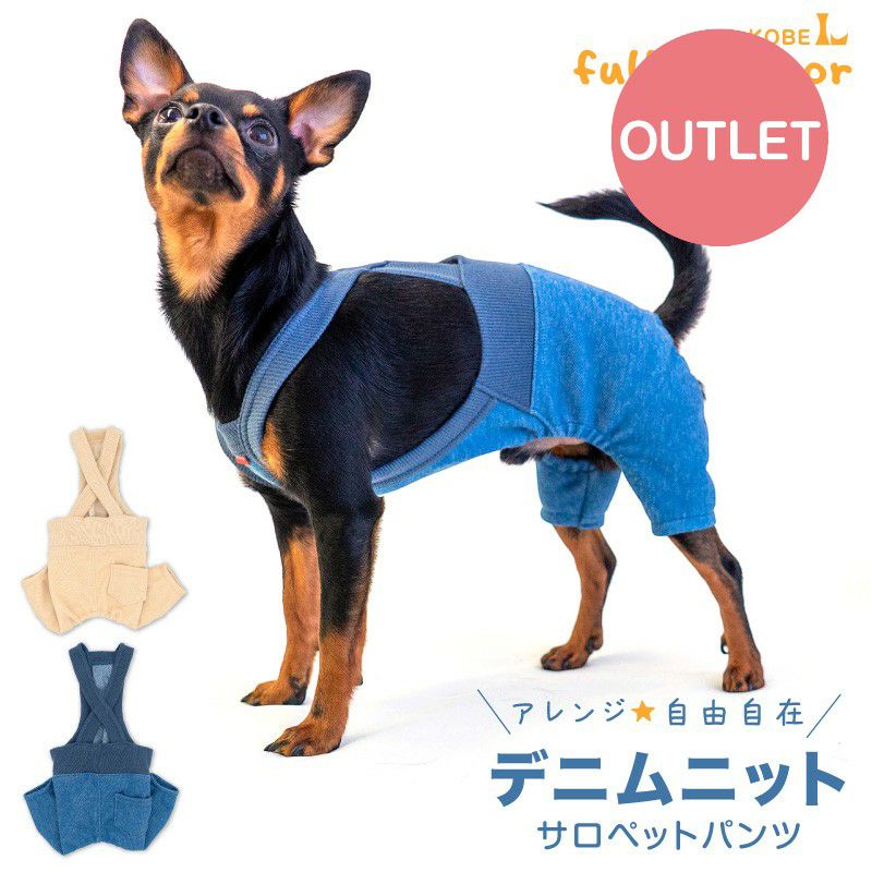 【アウトレット】デニム ニット サロペット パンツ おそろコーデ ダックス 小型犬用