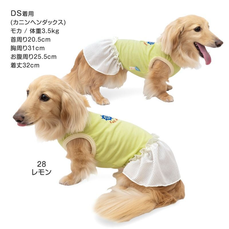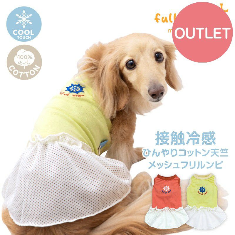 【アウトレット】接触冷感 ひんやりコットン 天竺 ワンポイント メッシュ フリル ワンピース ダックス 小型犬用