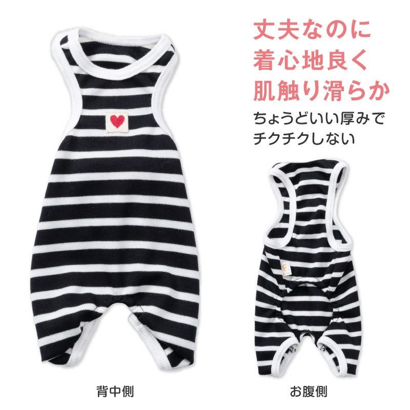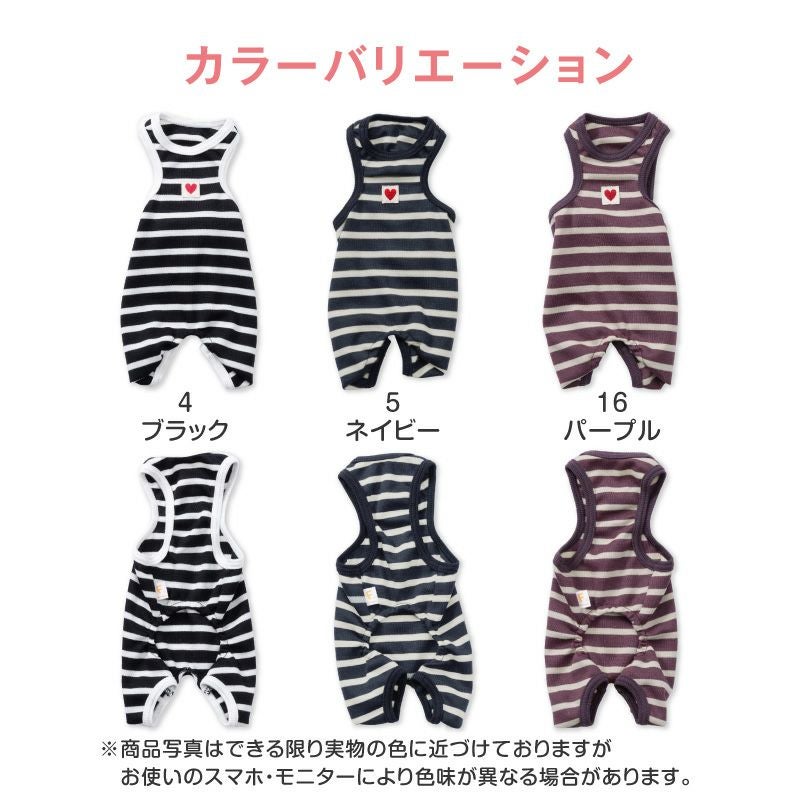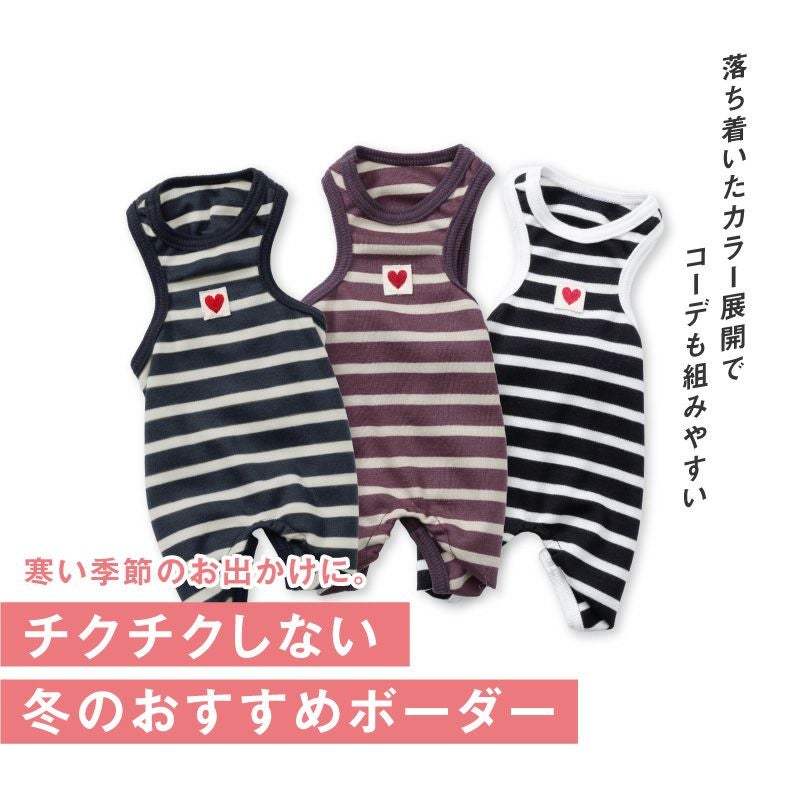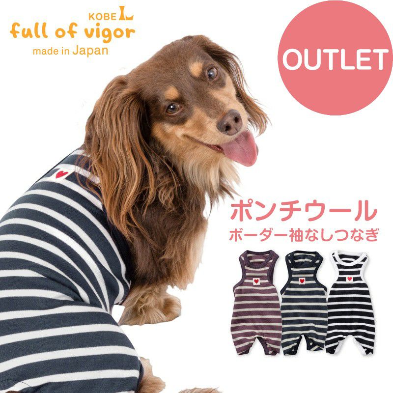 【アウトレット】ポンチウール ボーダー 袖なし つなぎ ダックス 小型犬用
