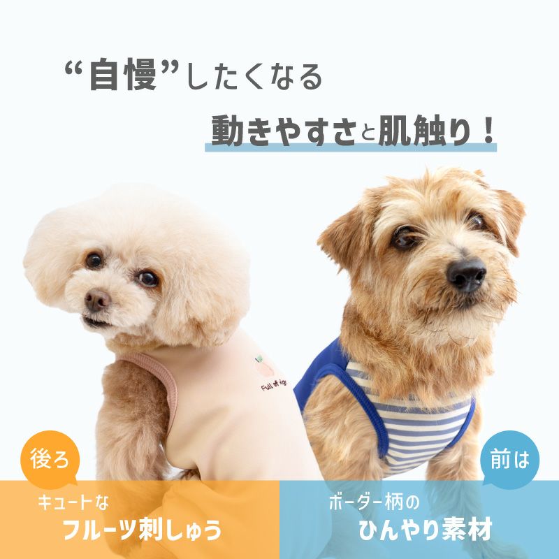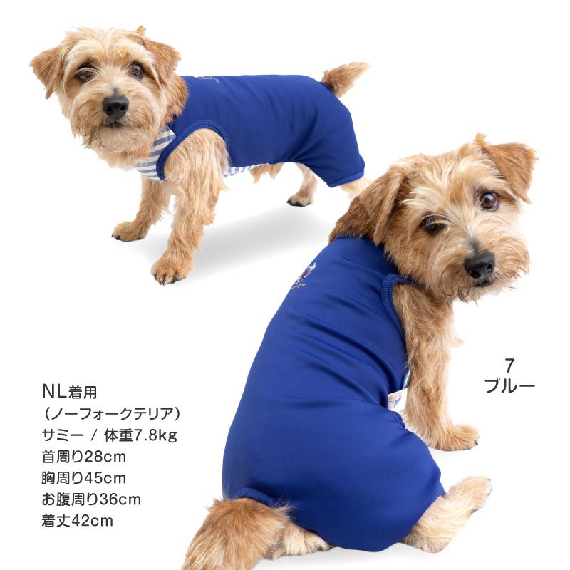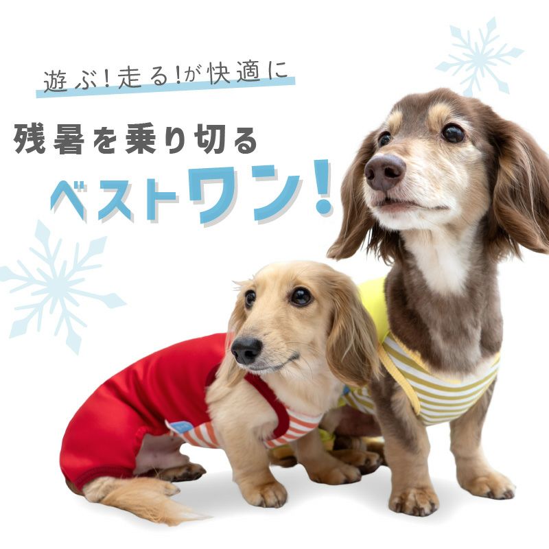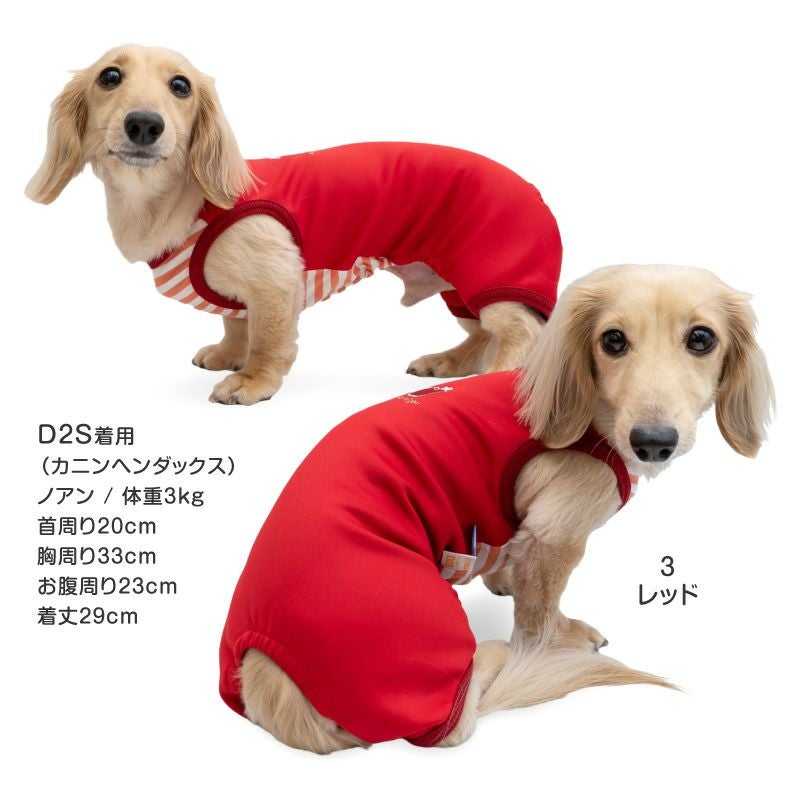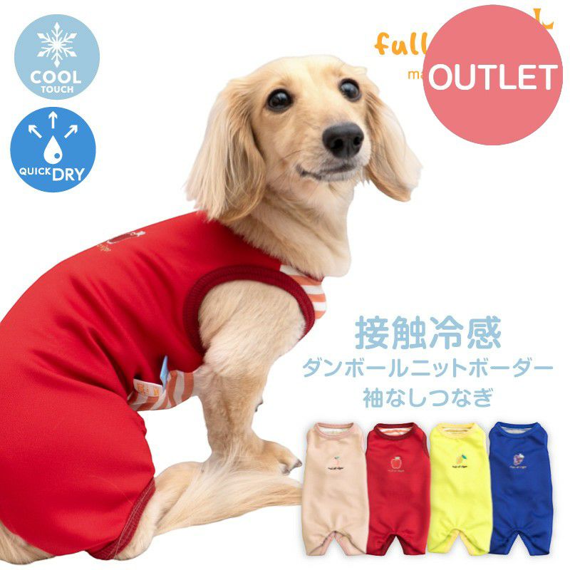 【アウトレット】接触冷感 ダンボール ニット ボーダー 袖なし つなぎ ダックス 小型犬用