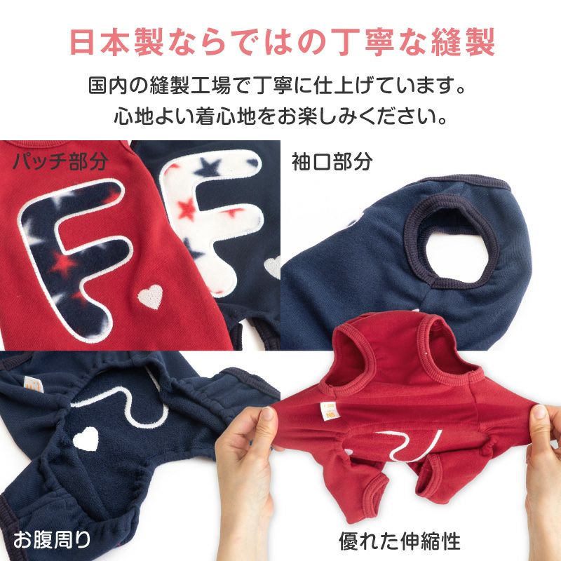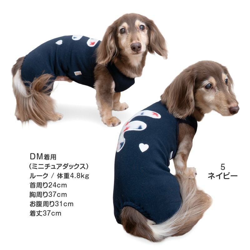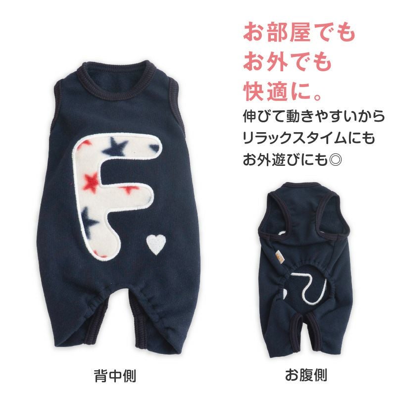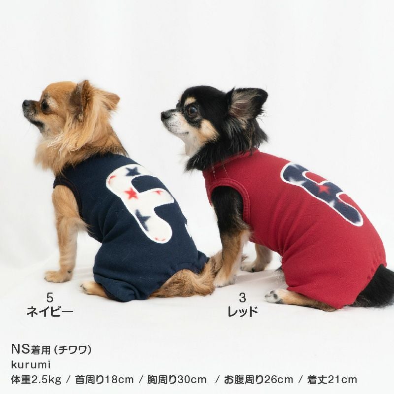 【アウトレット】星柄 パッチ ベア裏毛 袖なし つなぎ ダックス 小型犬用