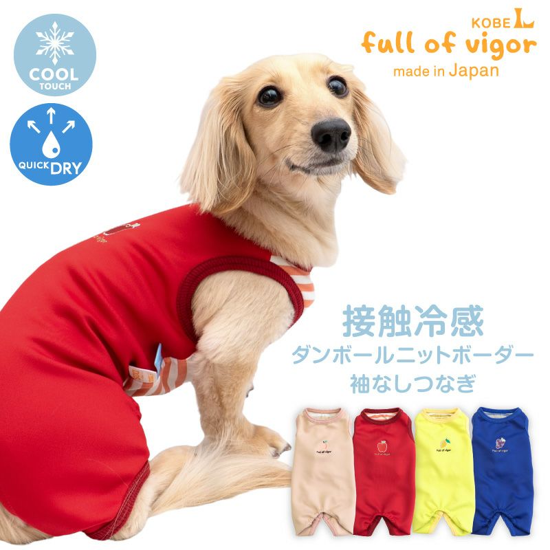 接触冷感 ダンボール ニット ボーダー 袖なし つなぎ ダックス 小型犬用