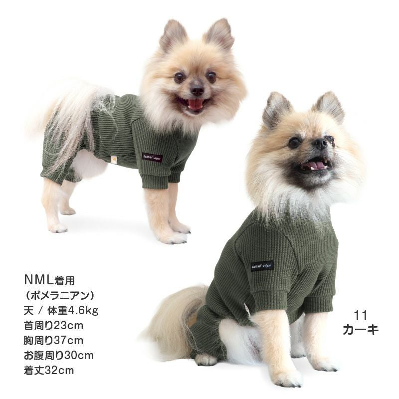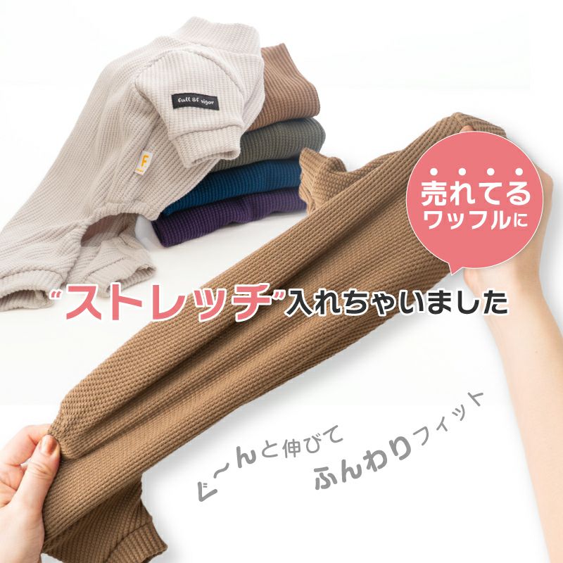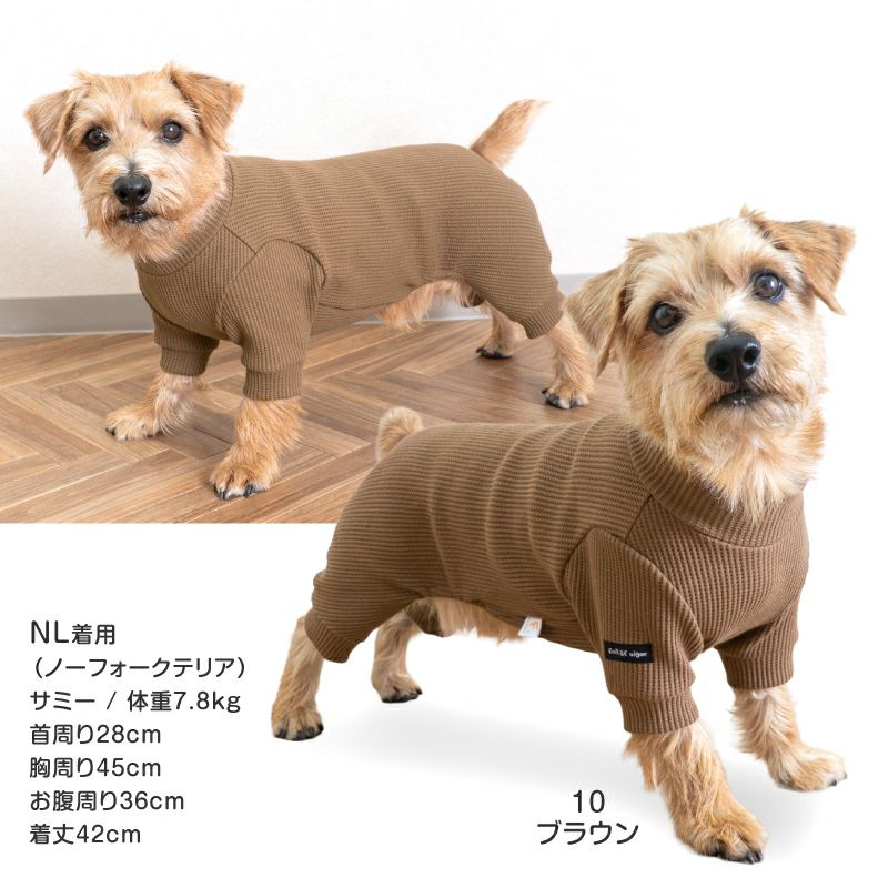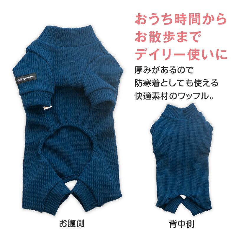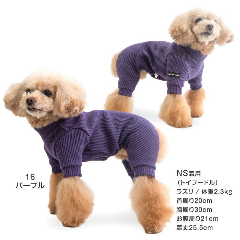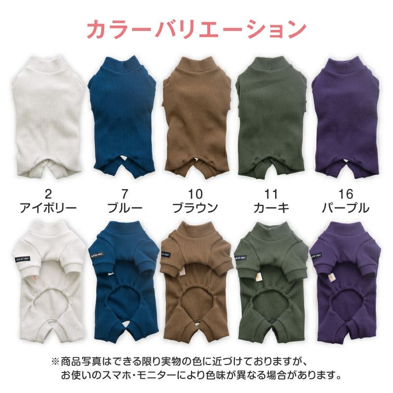 ストレッチ ベアワッフル 袖あり つなぎ ダックス 小型犬用