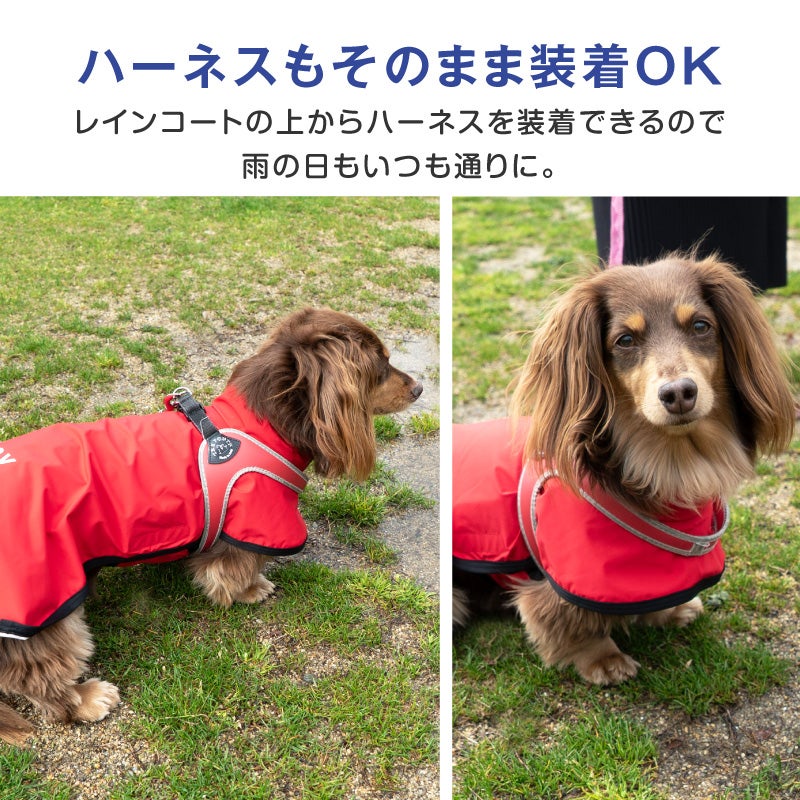 かぶるだけ ワンタッチ 防水 ドッグプレイ(R) 裏メッシュ レインコート ダックス 小型犬用