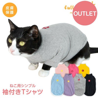 【アウトレット】猫用 伸びて 着せやすい シンプル 袖付き Tシャツのレビューを書く