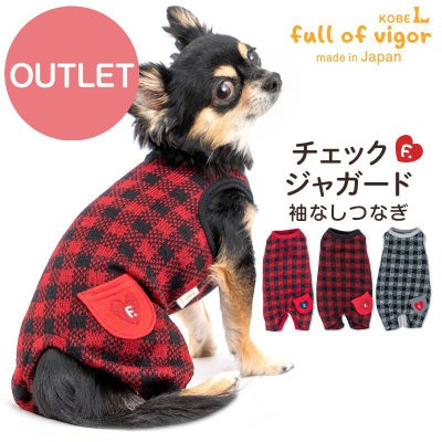 【アウトレット】チェック ジャガード 袖なし つなぎ ダックス 小型犬用のレビューを書く