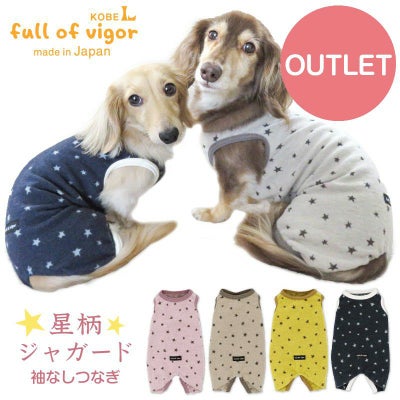 【アウトレット】星柄 ジャガード 袖なし つなぎ ダックス 小型犬用のレビューを書く