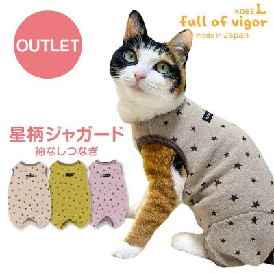 【アウトレット】猫用 星柄 ジャガード 袖なし つなぎのレビューを書く