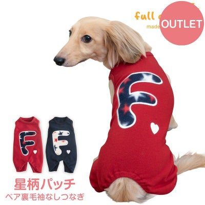 【アウトレット】星柄 パッチ ベア裏毛 袖なし つなぎ ダックス 小型犬用のレビューを書く